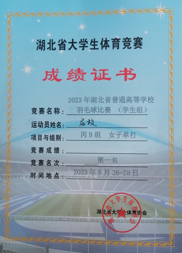 本网讯 5月26日-28日,2023年湖北省普通高等学校学生组羽毛球比赛(学生组)在武汉大学卓尔体育馆举行,我校派出教练员王其文、袁建军及17名运动员参赛。经过激烈角逐,我校获得丙B(体育专业)组女子团体冠军。男队获得丙B(体育专业)组男子团体第四名。在单项比赛中,我校获得组丙B(体育专业)组女子单打冠军,并获得男双第五名、混双第五名、女单第八名的好成绩。