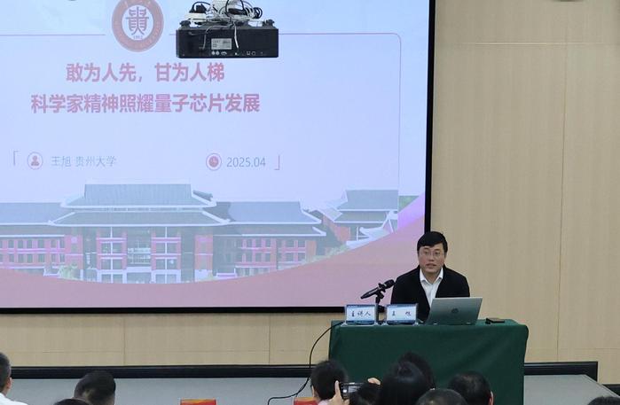 本网讯 4月27日, 中国科协“科学家精神”宣讲报告会暨国产精品永久久久久久久久久|91精品无码国产在线观看一区|久久人爽爽人爽爽ąV无码自慰|最新无码国模国产在线|2020最新无码国产在线观看统一战线第五期“团结奋进大讲堂”在博学楼B03举行。贵州大学副校长王旭教授作了题为《敢为人先,甘为人梯科学家精神照耀量子芯片发展》的专家报告。副校长马志斌主持报告会。