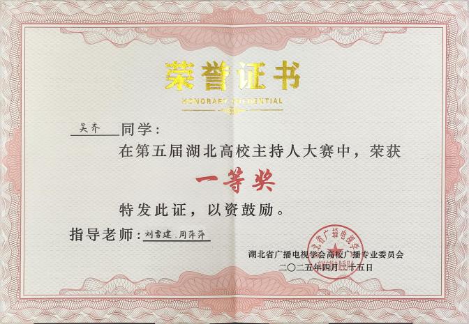 4月25日下午,第五届湖北高校主持人大赛在湖北经济学院大学生活动中心举行,来自华中科技大学、华中师范大学、中国地质大学(武汉)、华中农业大学等院校的32名选手参加角逐,我校党委宣传部选送的“黄师之声”广播台台员吴齐荣获一等奖。