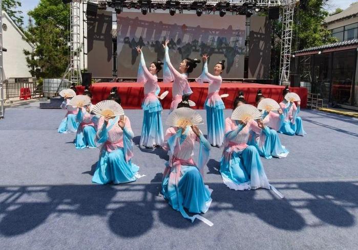 在五一期间的每日清晨,我校师生早早来到江柳摇村,通过60余人的歌舞巡游,6个传统、民族和现代舞蹈,一路吸睛,将驻足、出行的市民和游客带到主舞台,通过充分展示传统艺术的婉转韵味与现代艺术的跃动活力的节目演出。