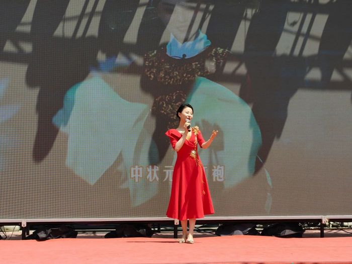 本次东坡庙会五一季主城区文旅消费参演节目,多遴选自我校音乐学院近年来原创改编的众多优秀获奖精品作品,既保留传统艺术精髓,又融入现代审美元素。歌曲《念奴娇赤壁怀古》《千古赤壁风流》与《观溪》《红安为什么这样红》,展现了黄冈红色文化与城市东坡文化的水乳交融;琴弦上的《浏阳河》流淌着红色记忆,指尖下的《山丹丹开花红艳艳》绽放着艺术新生;经典剧目《打猪草》与现代黄梅戏歌《上春山》让“戏曲活化石”在东坡文化的土壤中绽放新芽。学院众多声乐、器乐、舞蹈良师优生同台献艺,节目精彩纷呈、高潮迭起,不仅是一场展现地方特色的艺术展演,更是一堂行走在群众中的思政课堂。师生们在歌舞中展现艺术魅力,在器乐演奏中传递文化自信,实现艺术教育与文化传承的双向奔赴。