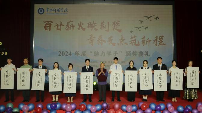 2024年度“魅力学子”分别是:研究生乐进、田茂栋,外国语学院汪欣怡,传媒与影视学院王镨迎,地理与旅游学院孙凯元,物理与电信学院刘雅萱,化学化工学院程贝,体育学院薛炜,音乐学院、黄梅戏学院王祖宏,美术学院吴可依,机电与智能制造学院姜鑫沂,建筑工程学院李继威。