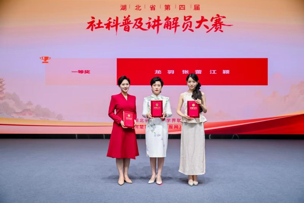 本网讯 服务支点建设,传播文化强音。7月29日,由湖北省社科联主办、荆楚网(湖北日报网)承办的湖北省第四届社科普及讲解员大赛在湖北日报楚天演播厅圆满落幕。经过两天的激烈角逐,我校传媒与影视学院播音与主持艺术专业学生江颖荣获一等奖,马克思主义学院研究生甘洪瑶荣获优秀奖。
