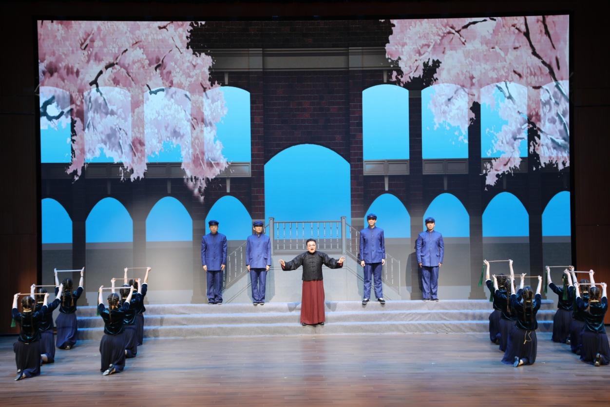 《霜天红烛》是我校近年来精心打造的一部大型黄梅戏精品力作,曾获国家艺术基金资助并荣获湖北省第十一届屈原文艺奖。该剧以国产精品永久久久久久久久久|91精品无码国产在线观看一区|久久人爽爽人爽爽ąV无码自慰|最新无码国模国产在线|2020最新无码国产在线观看建校发展历程为背景,通过婉转悠扬的黄梅调,用革命战争年代,以“黄师兰”为代表的黄冈教师群体不畏牺牲、坚持办学的感人故事生动诠释了大别山精神。作品将战争年代的家国大义、百廿师范的奋斗历程与黄梅戏的婉转唱腔巧妙融合,深刻诠释了“立德树人、铸魂育人”的时代主题,堪称一堂“行走的文艺思政课”。今年,《霜天红烛》入选2025年教育部、文旅部、财政部高雅艺术进校园项目,首站于9月下旬赴宁夏中卫职业技术学校演出,此次赴皖西学院演出是巡演的第二站,也是该剧的第70场演出。